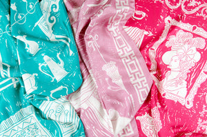 Each partnership begins with a shared vision—carefully aligned in tone, purpose, and narrative. Through meticulous research and creative craftsmanship, I design scarves that interweave the rich histories and unique identities of each organisation, collection, exhibition, or performance.